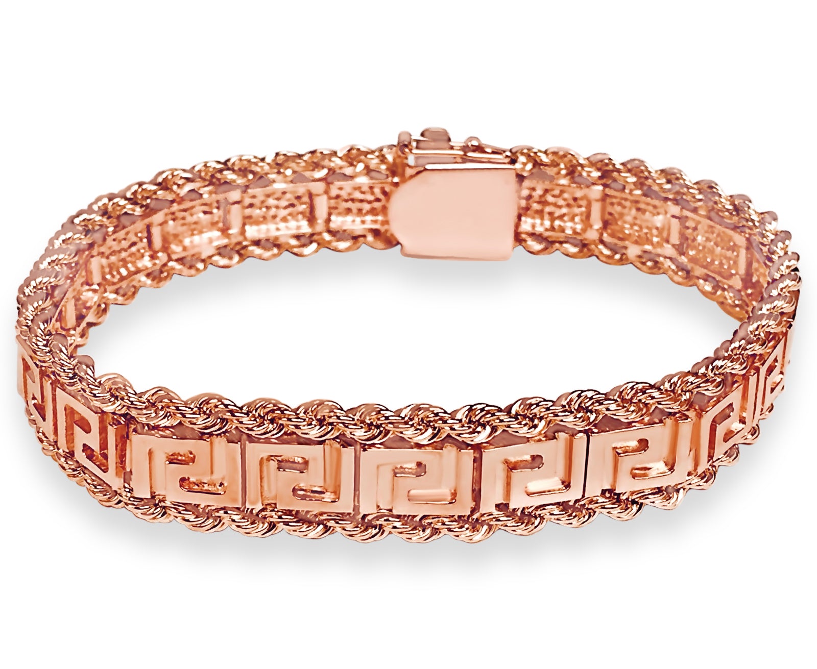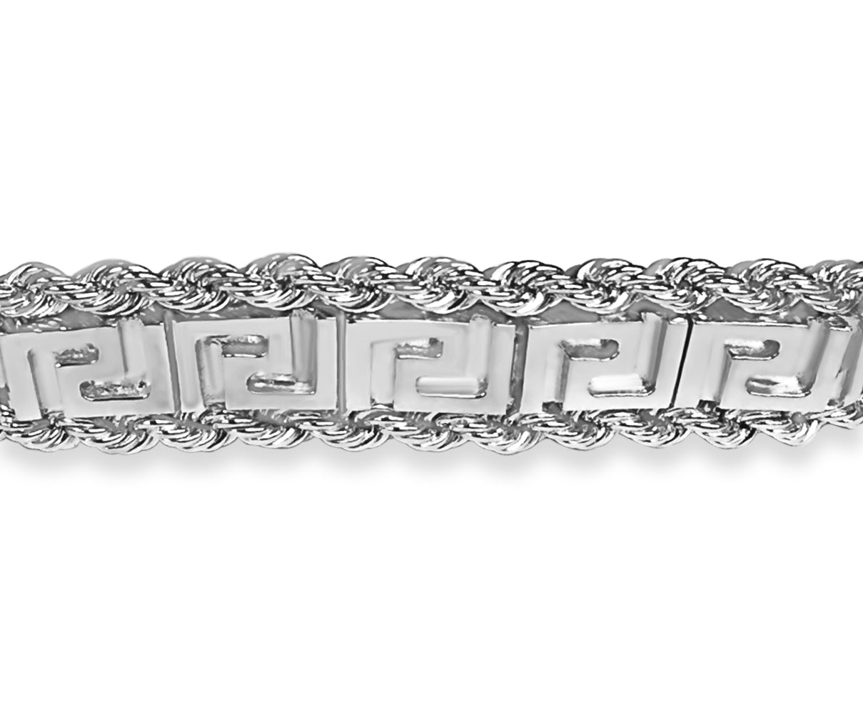 Title: Handmade Solid Gold Rope & Greek Key Bracelet, 12mm